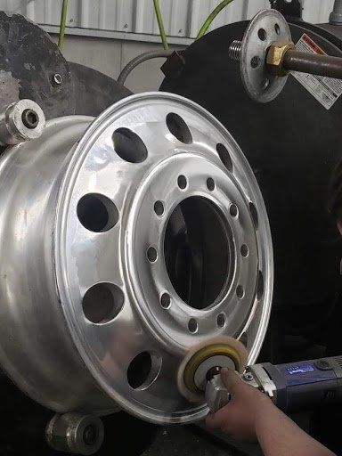 Rims, Stacks, Tanks, and Grill. If you want it looking good like Hollywood we can help you. We custom built our rim polishing machine based on the older Titan machine. We can polish the rims with or without the tire on.